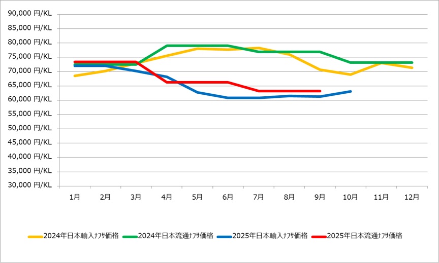 ■ 日本流通ナフサ価格(円/K)